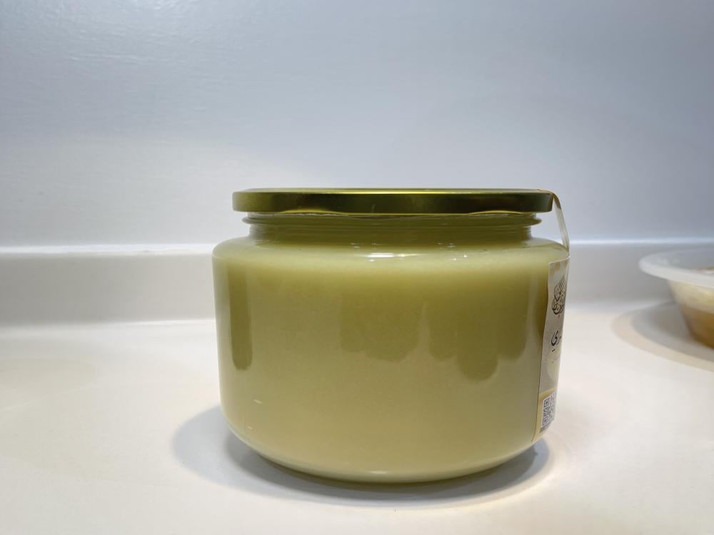 سمن غنم بري نقي 100%، مستخلص بعناية من حليب الأغنام الطازج باستخدام طرق تقليدية تحافظ على القوام الطبيعي والنكهة الأصيلة.